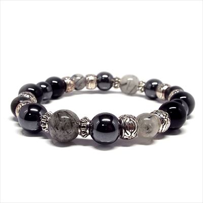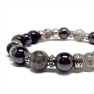 - [名称] 仕事・人脈にパワーを発揮するブラックルチルクォーツ ヘマタイト オニキスブレスレット☆