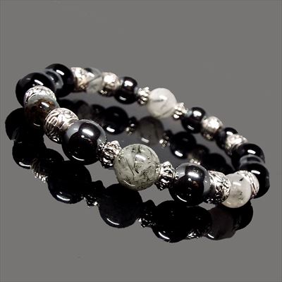 仕事・人脈にパワーを発揮するブラックルチルクォーツ ヘマタイト オニキスブレスレット☆ |