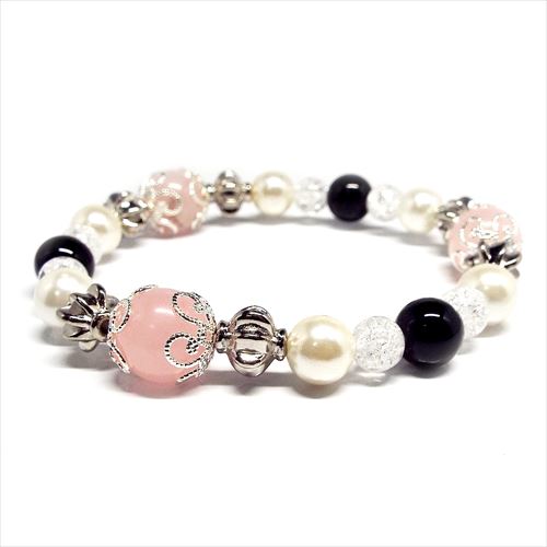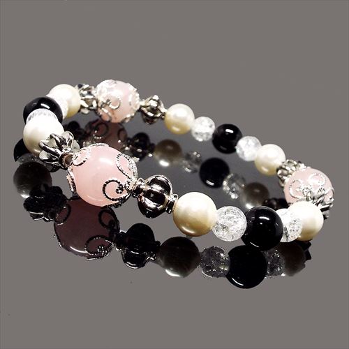 淡いピンクが人気の「ローズクォーツ」に、「パール」と「オニキス」がとてもオシャレなブレスレット♪